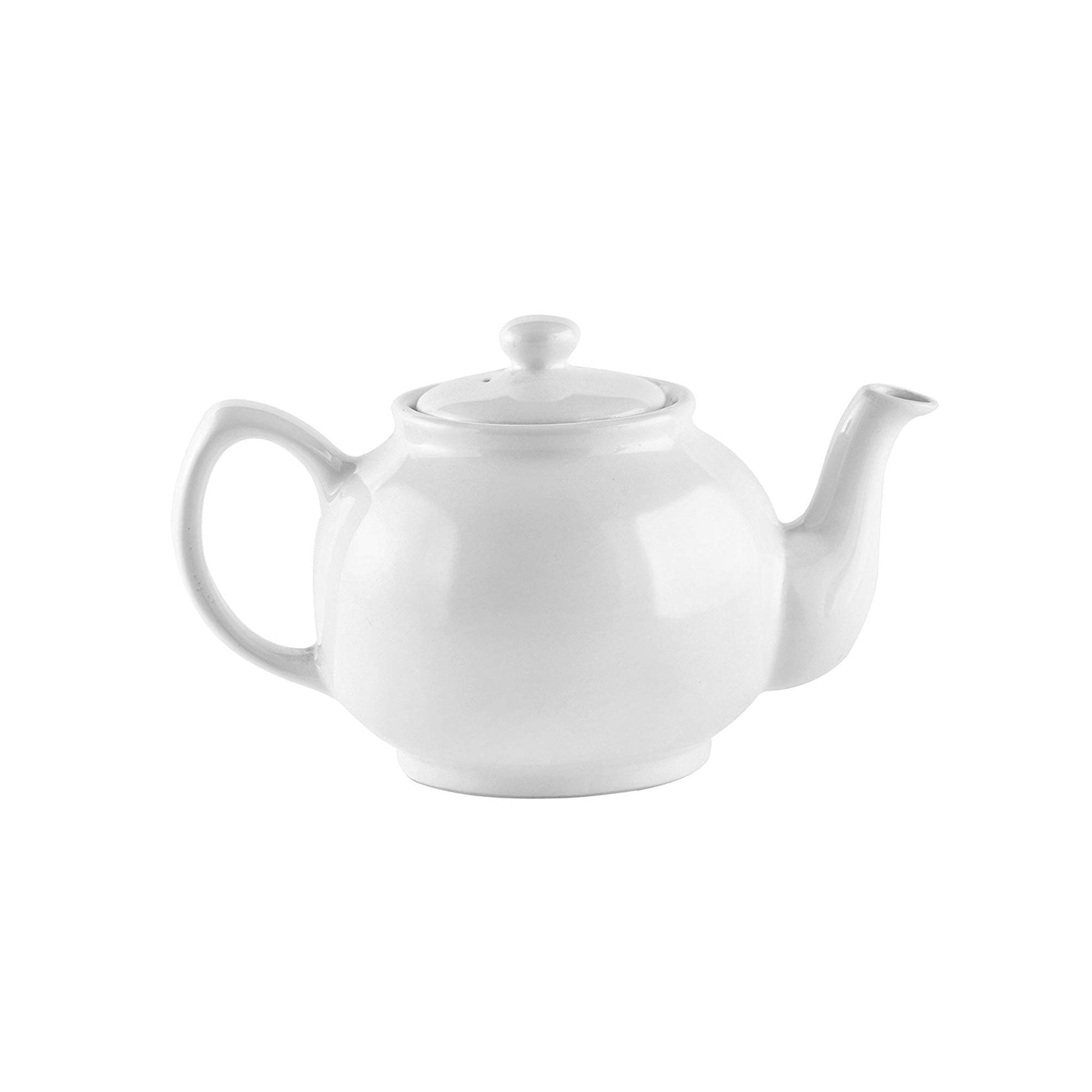 Restaurant grade simple white, chip resistant, ceramic teapot.