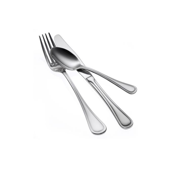 This commercial grade Flatware is made of made of durable Chrome Stainless Steel. The smooth rounded classic style means replenishment is easy.